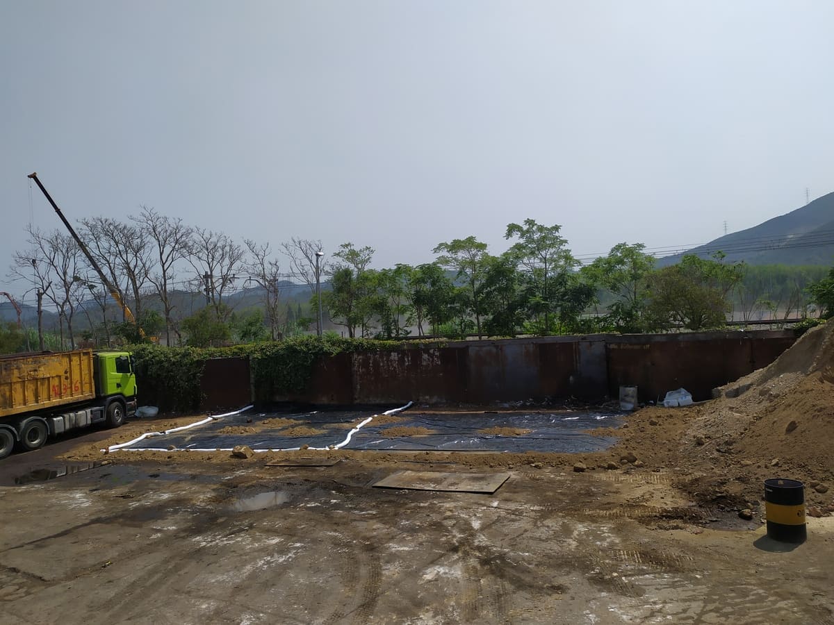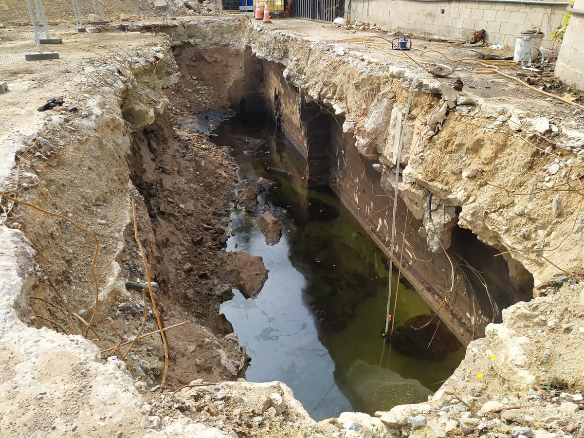 Descontaminació per excavació i extracció de fase lliure tipus fuel al medi subterrani saturat mitjançant un sistema de cinta oleofílica sense fi, complementat amb un sistema de mobilització per bombeig. Tractament de l’efluent d’aigua mitjançant decantació i separació de fases.